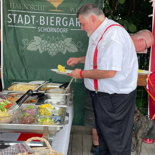 Ab 20 Personen könnt ihr es in unserem Holz-Pavillonbereich krachen lassen (und auf unserer neuen Terrasse) – mit Buffet (warme Menüplatten, kalte Vesperplatten, Bier zum Selbstzapfen aus Turm oder Fass, Spezialitäten aus dem Smoker ...). Sprecht uns einfach an, wir informieren euch gerne über alle Möglichkeiten – und richten das Fest dann nach euren persönlichen Wünschen aus.