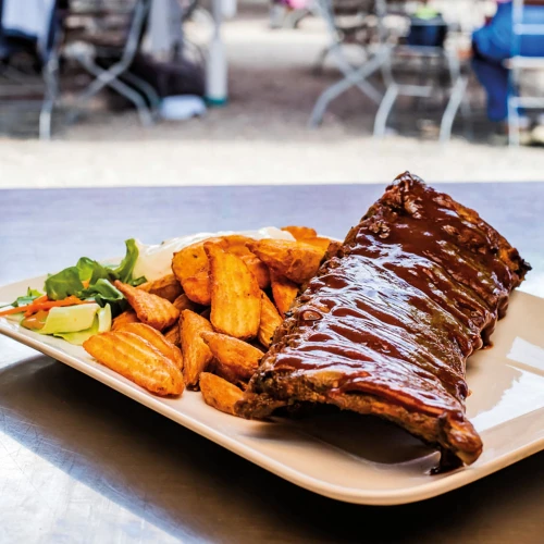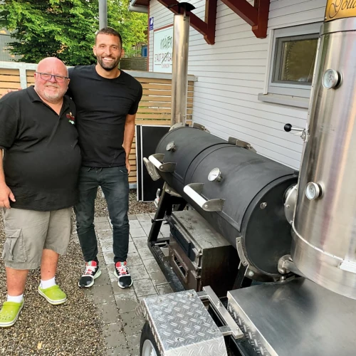Was manche von euch vielleicht nicht wissen: Volker Ziesel, einer unserer Macher, ist auch Boss der berüchtigten Auftragsgriller-Bande. Seit fast einem Jahrzehnt treibt der grandioseste Griller zwischen Rems und Rio Bravo mit seinem Grill-Team bereits sein Unwesen – auf Firmenfeiern oder privaten Feten. Der Absolvent der ersten Württembergischen Grillschule und Intimkenner der US-Barbecue-Szene lässt diese Erfahrungen natürlich auch im Biergarten mit einfließen. So ist sein Smoker eines der wichtigsten Küchenutensilien. In ihm entstehen Gerichte, die dauerhaft auf unserer Karte stehen (zum Beispiel das Pulled Pork), aber auch Specials zu bestimmten Events (zum Beispiel Spareribs).