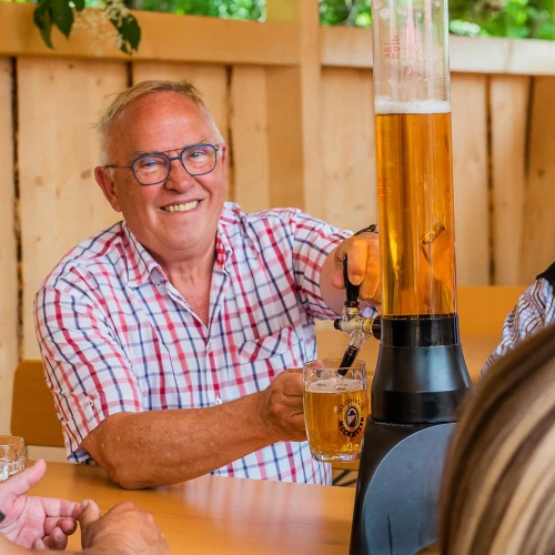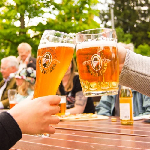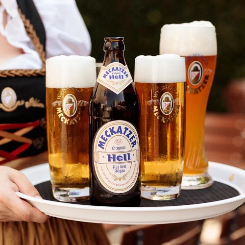 Seien wir ehrlich: Die Qualität eines Biergartens steht und fällt mit der seiner Biere. Deshalb haben wir uns die Wahl nicht leicht gemacht und die Messlatte hoch gelegt. Ein besonderes Bier soll’s sein. Kein Massenbier, aber schon mit gewissem Bekanntheitsgrad. Und natürlich muss es super schmecken. Die gründliche Suche hat sich gelohnt, das Ergebnis kann sich sehen lassen: Die Wahl fiel auf Meckatzer, das Premium-Bier aus dem bayrischen Allgäu. Ein Familienbetrieb, der mit einem besonderen Brauverfahren tolle Biere herstellt. Dazu gesellt sich ein prominenter Nachbar. Beim Kristallweizen haben wir keine geringere Brauerei gewählt als die Erfinderin dieses Biers: die Edelweißbrauerei Farny aus Kißlegg. Prost!